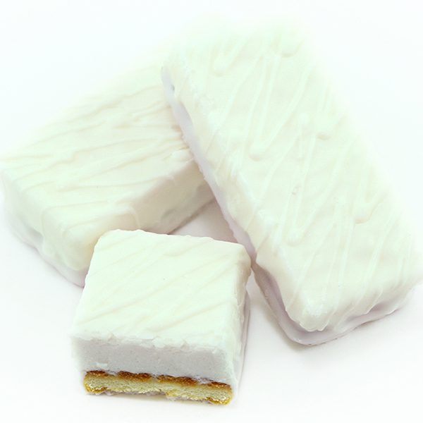 Сахарное печенье с ароматом ванили с прослойкой из зефира, полностью глазированное белой кондитерской глазурью.
