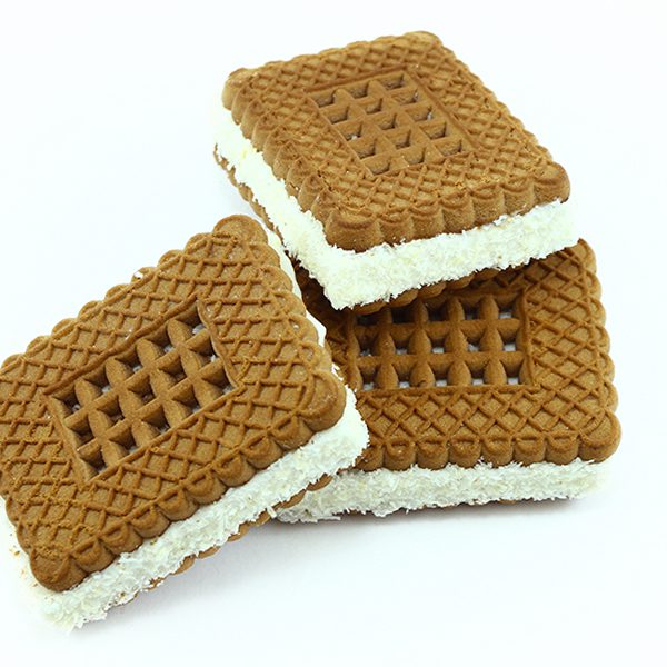 Сахарное печенье с какао-порошком с прослойкой из зефира, в кокосовой стружке.