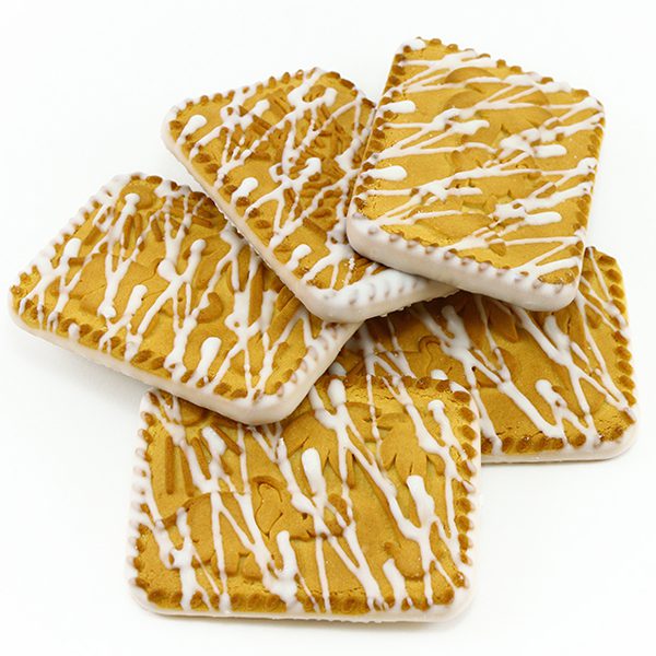 Хрустящее, сладкое, сахарное печенье с ароматом кокоса, частично глазированное, с отделкой белой кондитерской глазурью.