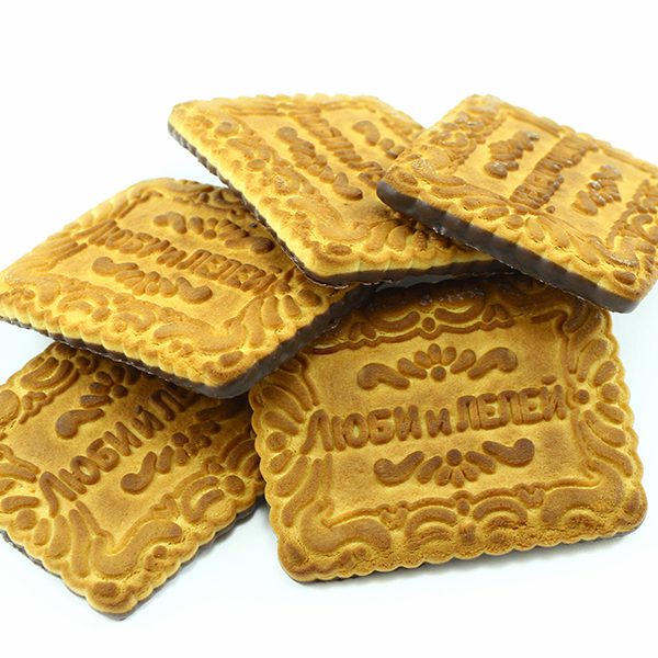 Рассыпчатое, нежное сахарное печенье с ароматом ванили, частично глазированное темной или белой кондитерской глазурью.