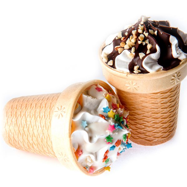 Зефир «Маг и Я» (ванильный) в вафельном стаканчике, с джемом «Черная смородина», с отделкой темной и белой кондитерской глазурью, арахисом и кондитерской посыпкой