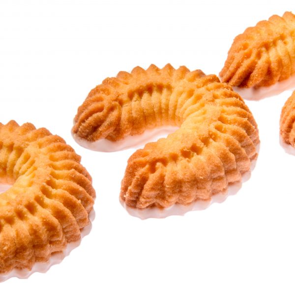 Песочное печенье в форме подковки, частично глазированное (донышко) белой кондитерской глазурью