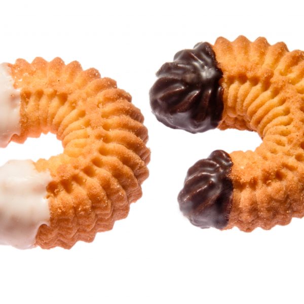 Песочное печенье в форме подковки с отделкой черной или белой кондитерской глазурью