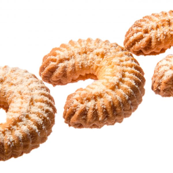 Песочное печенье в форме подковки, с отделкой сахарной пудрой