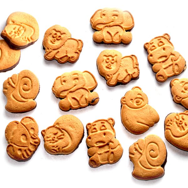 Сладкое сахарное печенье фигурной формы в виде животных частично глазированное темной кондитерской глазурью