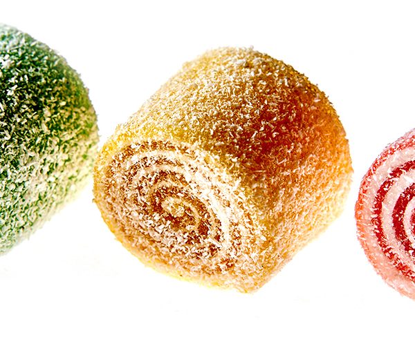 Нежные мармеладные рулетики с прослойкой из зефира, с ароматами фруктов и ягод, в кокосовой стружке.