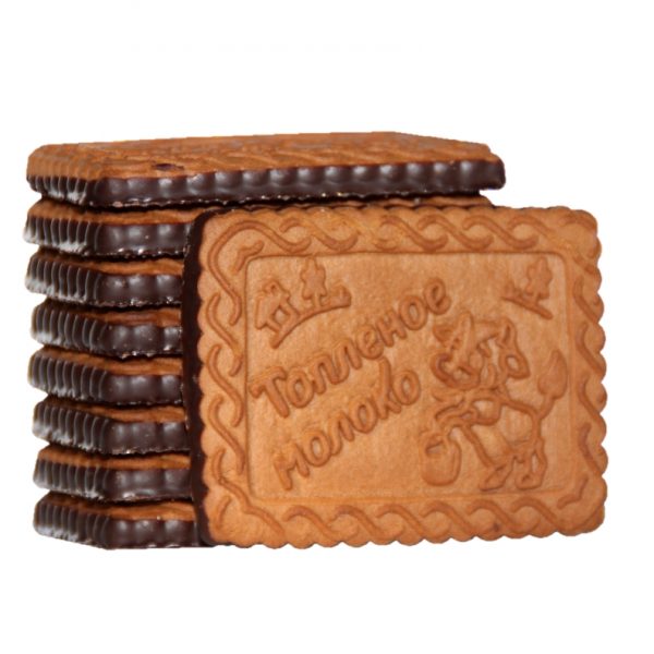 Рассыпчатое нежное сахарное печенье с какао-порошком, с ароматом домашнего топленого молока, частично глазированное темной кондитерской глазурью.